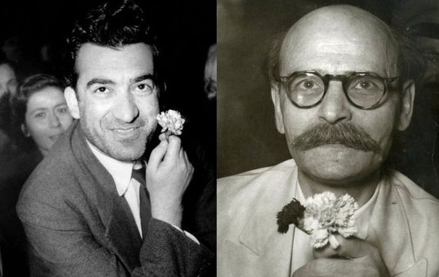 O Γιάννης Αλεξάνδρου- Διαμαντής (αριστερά) με τον Χαρίλαο Φλωράκη-Γιώτη στο Καρπενήσι τον Ιανουάριο του 1949.