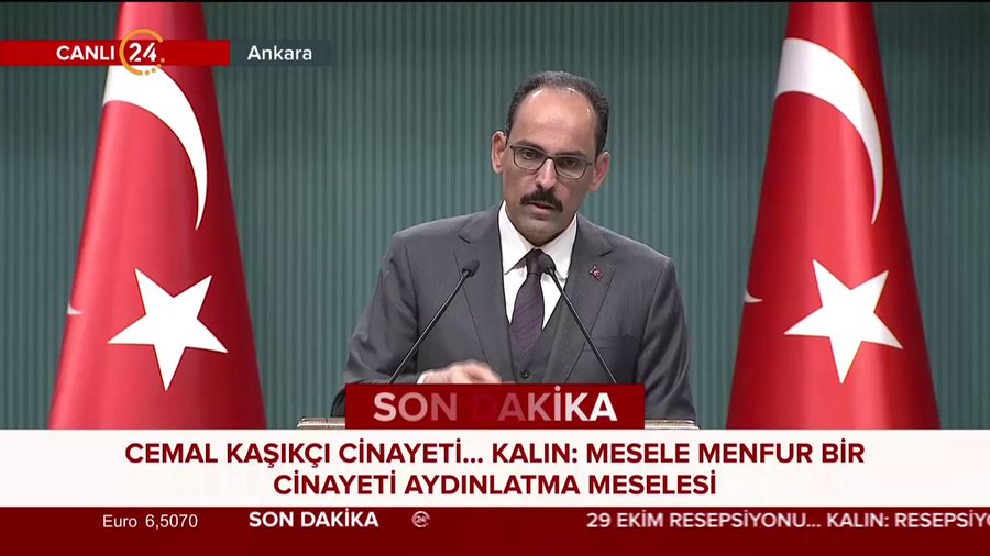 Πριν λίγο και ο εκπρόσωπος της τουρκικής προεδρίας Ιμπραχίμ Καλίν αναφερόμενος στο θέμα των χωρικών υδάτων δεν αναγνώρισε τίποτα για την Ελλάδα και την Κύπρο και μάλιστα έκανε λόγο και για το διεθνές δίκαιο: