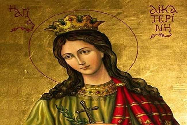 Η Αγία Αικατερίνη ή Αικατερίνη της Αλεξάνδρειας, γνωστή και ως Μεγαλομάρτυς Αγία Αικατερίνη και κατά τους υμνολόγους της Ορθόδοξης Εκκλησίας Αικατερίνα (282 - 305), που κατά την Ορθοδοξία, έγινε αγία επειδή έμεινε ακλόνητη στα πιστεύω της παρά τις πιέσεις και τα βασανιστήρια που υπέστη, κατά τον πρώιμο 4ο αιώνα και τιμάται αύριο 25 Νοεμβρίου