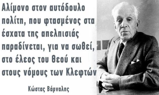 «Αλίμονο στον αφτόδουλο πολίτη, που φτασμένος στα έσχατα της απελπισιάς, παραδίνεται για να σωθεί, στο έλεος του Θεού και στους νόμους των κλεφτών».