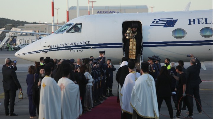 Αφίχθηκε στην Αθήνα με το κυβερνητικό αεροσκάφος το 'Αγιο Φως, λίγες ώρες μετά την τελετή Αφής του στα Ιεροσόλυμα.