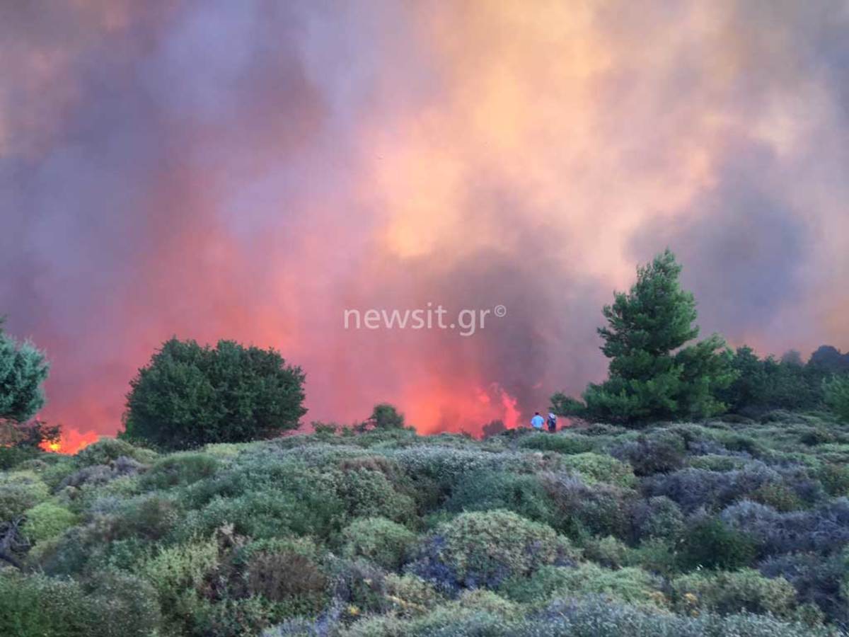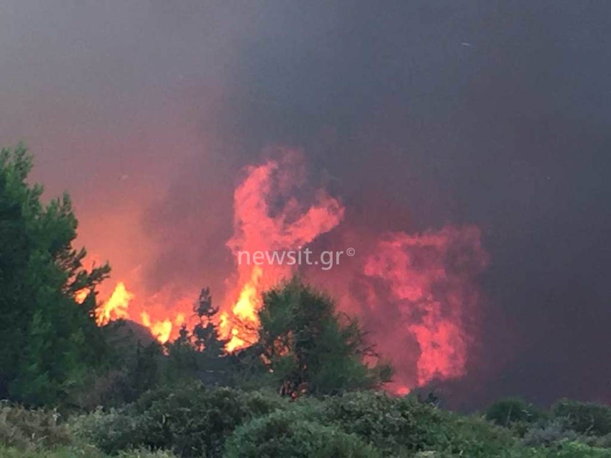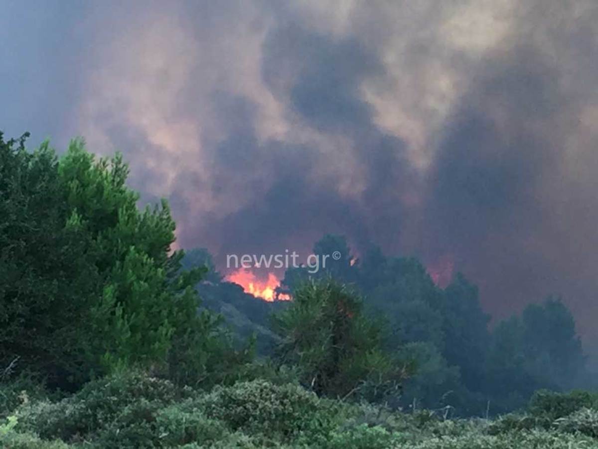 Ανεξέλεγκτες διαστάσεις έχει λάβει το πύρινο μέτωπο που ξεκίνησε χθες από τον Κάλαμο Αττικής, επεκτάθηκε στο Βαρνάβα, το Καπανδρίτι και κινήθηκε μέχρι την παραλία σε Αγίους Αποστόλους και Σέσι Γραμματικού. Πολύωρη μάχη με τις φλόγες δίνουν οι επίγειες και εναέριες δυνάμεις. Η συνεχής αλλαγή κατεύθυνσης των ανέμων δημιουργεί σοβαρές δυσχέρειες στο έργο των πυροσβεστών. Σε κατάσταση έκτακτης ανάγκης η Ζάκυνθος που καίγεται για τέταρτη μέρα.