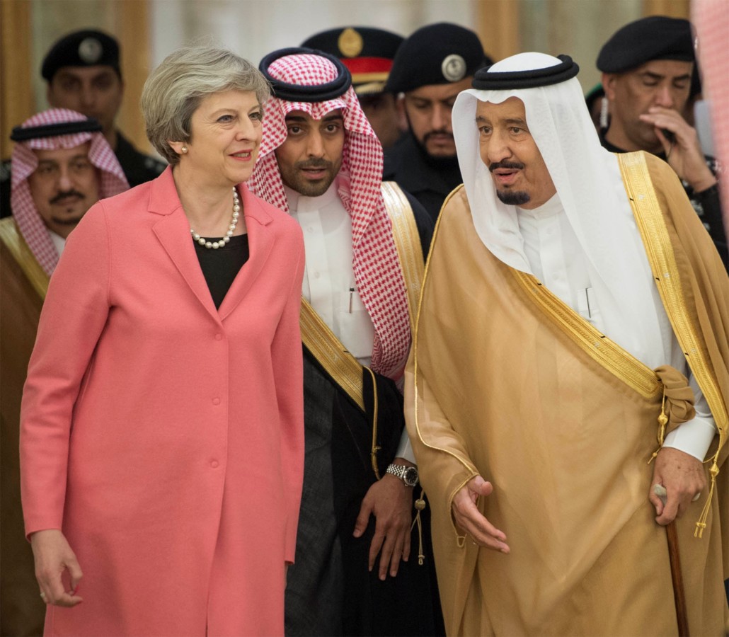 Μόλις τον περασμένο Απρίλη η κυρία Μέι επισκέφτηκε την Σαουδική Αραβία. Ανάμεσα στα άλλα υπέγραψε και συμφωνίες πώλησης οπλικών συστημάτων αξίας τουλάχιστον 3,5 δισεκατομμυρίων λιρών.